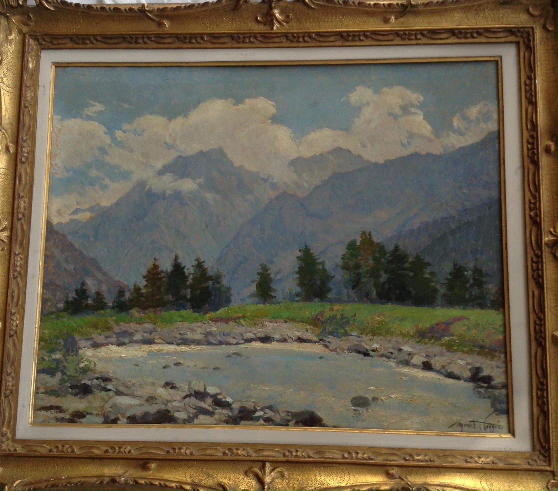 Luminosissimo olio su tavola raffigurante laghetto di montagna presso Macugnaga del pittore Mario Moretti Foggia( Mantova, 1882-Verbania, 1954) 22 agosto 2017 ~ furlarte ~ Lascia un commento