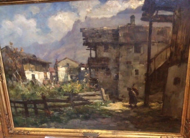 Vittore Antonio Cargnel( Venezia, 1872-Milano, 1931) splendido e luminosissimo grande olio su tela del 1927 del noto pittore “poeta” Veneto raffigurante delle baite nell’alto Friuli.