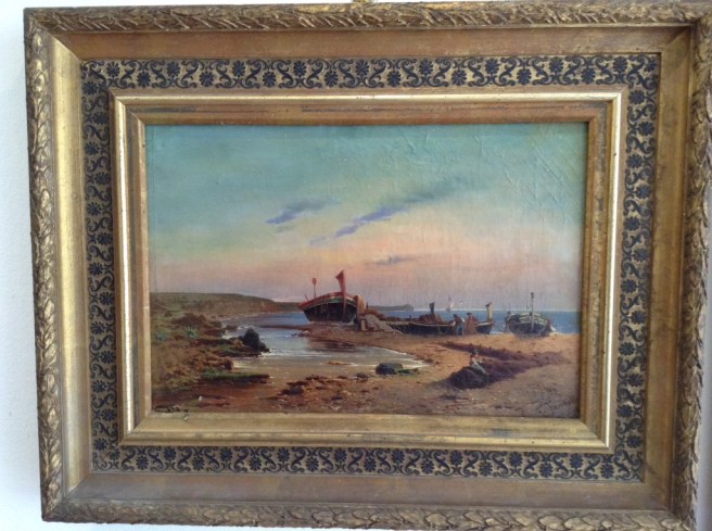 Marina con pescatori al tramonto, olio su tela del lombardo Gaetano Fasanotti( Milano, 1831-1882), noto paesaggista romantico.
