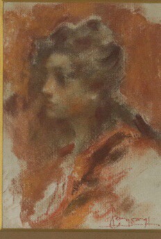 Ritratto di fanciulla di profilo, tecnica mista  del celebre pittore scapigliato Luigi Conconi( Milano, 1852-1917), dipinto di estrema raffinatezza e dolcezza.