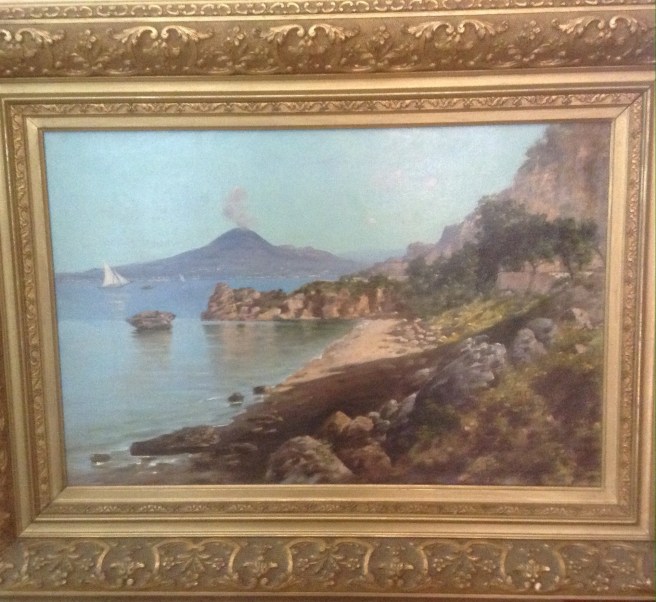 Edoardo Cortese(Napoli, 1856- Tucuman, 1918),raro pittore napoletano,Marina di Napoli col Vesuvio sullo sfondo.